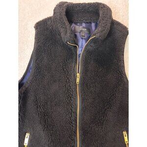 J.Crew Womens Black Sherpa Fleece Vest With Gold Zippers Size XS Cozy Outerwear