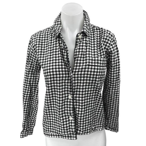 J.Crew Women's Black White Gingham Check Button Down Shirt Top Size XXS