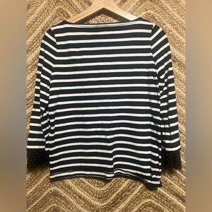 J.Crew Women's Black & White Striped Blouse with Polka Dot Tulle Cuffs,Sixe XS
