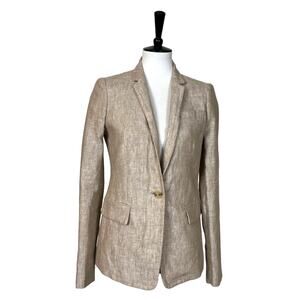 J.Crew Women’s Blazer Linen Schoolboy One Button Slim Lapel Natural Tan Size 6