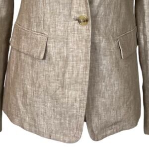 J.Crew Women’s Blazer Linen One Button Slim Lapel Flap Pocket Natural Tan Size 6