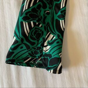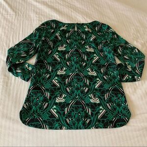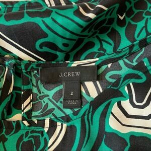 J. Crew Womens Blouse Shirt Green 3/4 Sleeve Retro Floral Popover Size 2