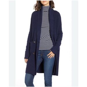 J. Crew Womens Blue Merino Wool Blend Double Breasted Cardigan Jacket Size Large