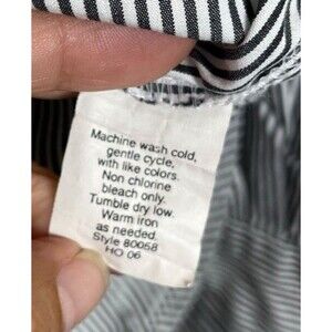 This J.Crew Womens Blue Striped Preppy Tuxedo Ruffle Front Button Down Shirt Blouse is a stylish and versatile addition to any woman's wardrobe. Made from 100% cotton, this long sleeve blouse features a collared neckline and button closure, perfect for both party and casual occasions. The ruffle accents add a touch of sophistication to the classic striped design, while the slim fit and all-season features make it a timeless piece for any fashion-forward woman.