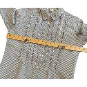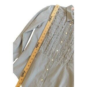 J.Crew Women’s Blue Striped Preppy Tuxedo Ruffle Front Button Down Shirt Blouse
