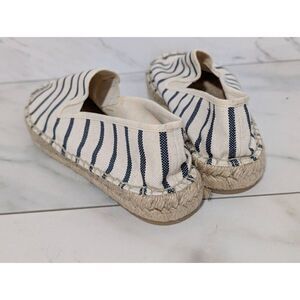 J. Crew Women's Blue & White Striped Canvas Loader Rope Sole Flat Shoes Size 8