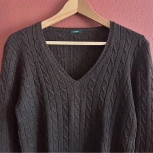 J.Crew Women's Brown Cable Knit Cashmere Merino Blend V-neck Sweater Sz M Great!