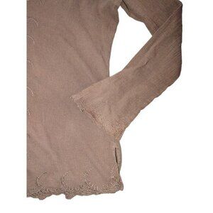 J.Crew Womens Brown Embroidered V Neck Top L Long Sleeve Boho Cottagecore Vibe
