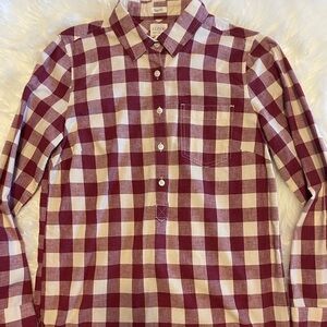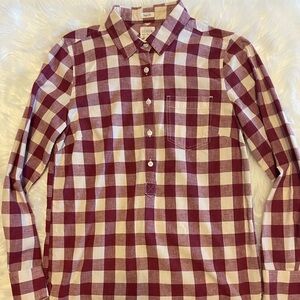 J.Crew Women's Button Up Shirt Long Sleeve Burgundy Plaid Size S