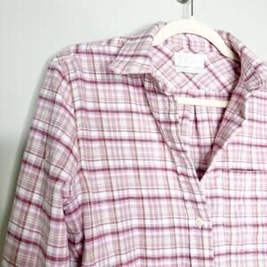 J.Crew Womens Button-Up Shirt Flannel Plaid Long Sleeve Classic-Fit Pink Size 4