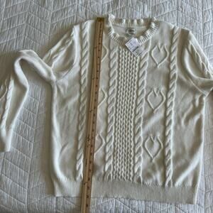 J.Crew Women’s Cable-Knit Hearts Crewneck Sweater Ivory CF398 | Size Large New