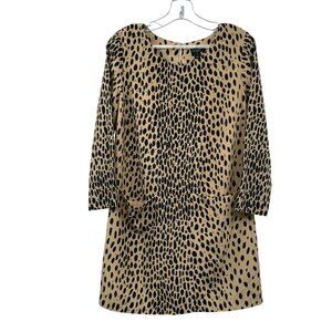 J.Crew Womens Cheetah Print Shift Dress 3/4 Sleeve Pockets Tan/Black Size 8
