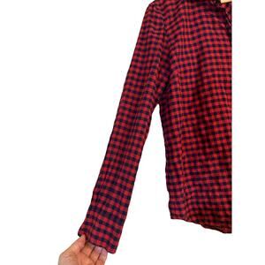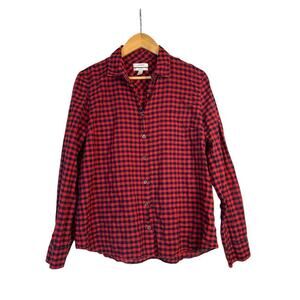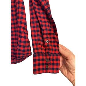 J.Crew Women's Cotton Modal Crinkle Button Up Check Boy Shirt Size 12 Red Navy