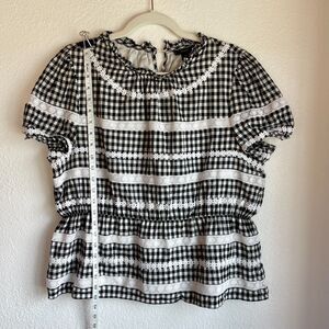 J.Crew Women's Daisy-Chain Peplum Top in Gingham in Black & White - Size L
