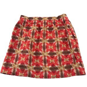 J.Crew Womens Elastic Waist Pull-On Skirt Size 8 100% Cotton Red/Brown/Green Pat