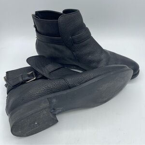 J.Crew Womens Emmett Black Pebbled Leather Ankle Boots Size 7 Side Zip Buckle.