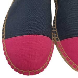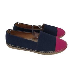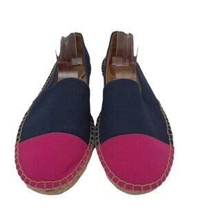 J.Crew Womens Espadrilles Flat Shoes Blue Pink Textile Slip On Stitching 7.5 New
