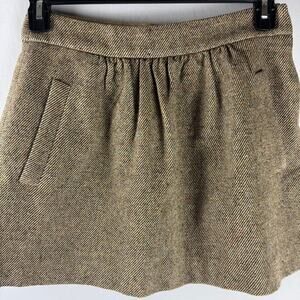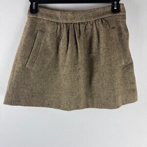 J. Crew Women's Pleated Fashion Casual Wool Mini Skirt Size 2 Brown