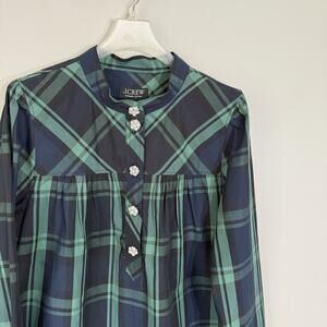 J.Crew Womens Fresco Top Rhinestone Buttons Size S Green Tartan Plaid Academia