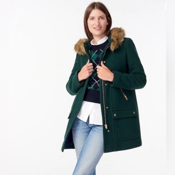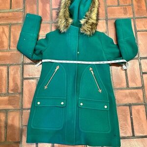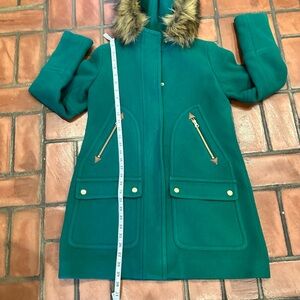 J.Crew Women's Green Italian Stadium-Cloth Wool Chateau Parka Hooded Coat Sz 0
