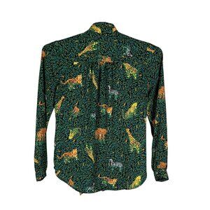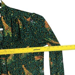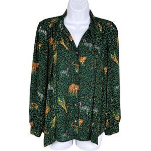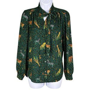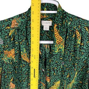 jungle print blouse tie neck blouse J.Crew blouse women's green blouse lightweight blouse button-down shirt exotic print top casual chic blouse long sleeve blouse animal print clothing jungle-inspired fashion unique pattern blouse wardrobe statement piece