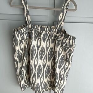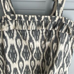 J.Crew Women’s Ikat Ruffle Flounce Tank Top Gray /Beige Cotton With Pockets Sz 8