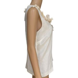 J. Crew Women's Ivory Cotton Silk Ruffled Beaded Neckline Victorian Blouse Sz 6