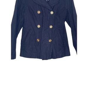 J.Crew Women's Jacket Coat Double Breast Gold Buttons Long Sleeve Blue Size 2