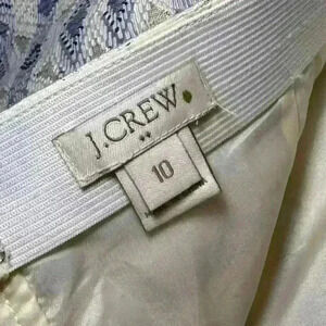 Keywords: J.Crew, flare skirt, size 10, multicolor, geometric pattern, knee-length, casual skirt, office wear, jacquard fabric, zip closure, lined skirt, all seasons, women's fashion, pre-owned.