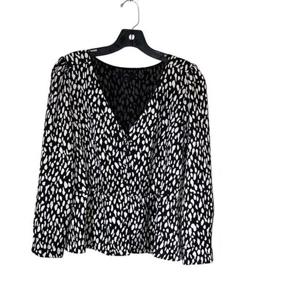 J. Crew Womens Leopard Print Peplum Blouse Top Black White Size 6