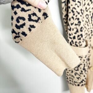 J.Crew Womens Long Cardigan Sweater Leopard Print Wool Blend Brown Black Size S