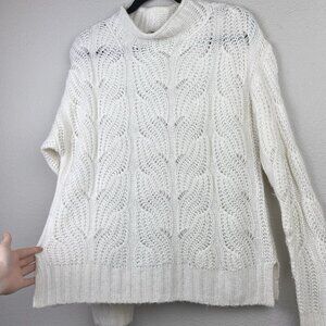 J.Crew Women's Medium Pointelle Cable Knit Sweater Mock Neck Ivory Cream Alpaca Blend
