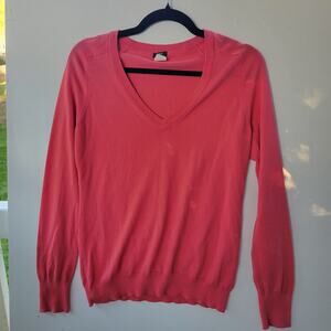 J.Crew Women’s Medium Sweater Coral Pink V-Neck Pullover 100% Cotton Long Sleeve