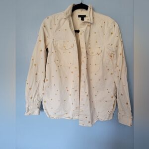 J.Crew Women's Metallic Gold Star Print Button-down Shirt Size XXS Ivory