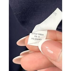 Size 6. Has a small hole on the back of the arm; not super noticeable since the navy and black backing blend.