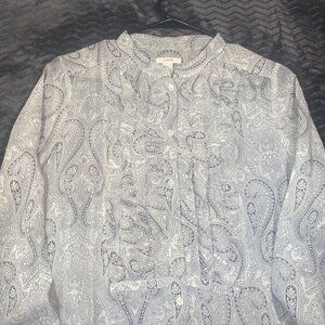 J.Crew Womens Paisley Print 100% Silk Button-Up Blouse With Ruffle Detail Size 2