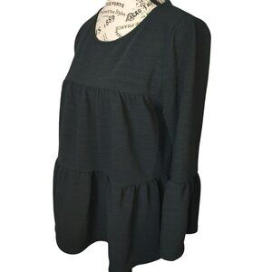JCrew Womens Peplum Top M Black Bell Sleeve Textured Classic Corporate Goth