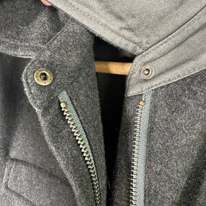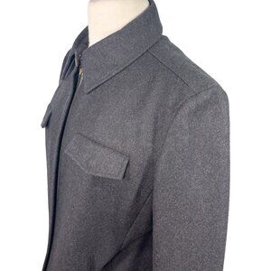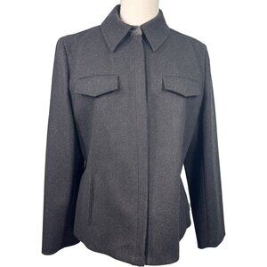 Stay warm in timeless style with this J.Crew Women's Wool Blend Jacket in a sophisticated charcoal gray. This Petite size Large coat features a structured silhouette with a hidden zip front, dual chest flap pockets, and hand pockets for functionality. Fully lined for comfort, it's crafted from a durable wool blend that offers warmth without bulk.