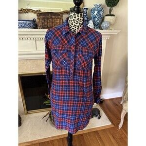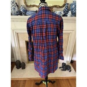 J.Crew Women's Plaid Red Blue Flannel Shirt Dress SZ S Popover Button Front