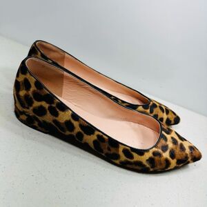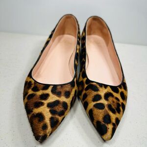 J Crew Womens Pointed Toe Brown Leopard Calf Hair Flats Size 9,5