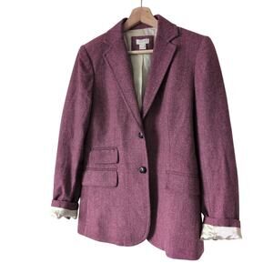 J.Crew Womens Purple Herringbone Tweed Wool Blazer Jacket Size 6 Career Workwear