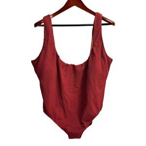 This J.Crew one-piece swimsuit offers a flattering fit in a rich Chi color. Made predominantly from recycled polyester, it combines sustainability with style. The swimsuit features a low scoop back and a textured fabric that enhances its visual appeal. Ideal for beach outings or poolside lounging, this piece is both eco-friendly and chic.