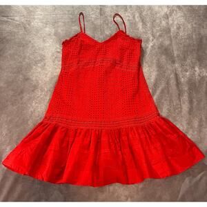 J.Crew Women's Red Eyelet Ruffle Hem Spaghetti Strap Fit & Flared Dress Size 2