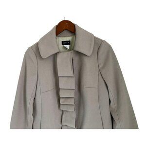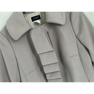 J.Crew Womens Ruffle Front 100% Wool Coat Size Pale Gray Long Sleeve