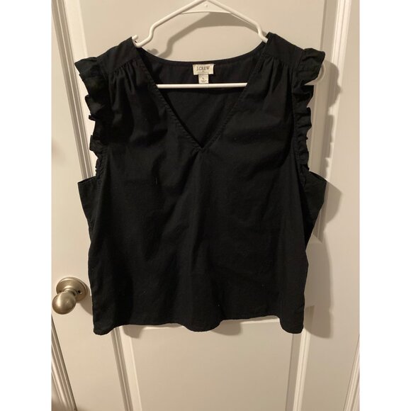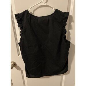 J.Crew Women's Ruffled V-Neck Sleeveless Top Size L Black Made In India