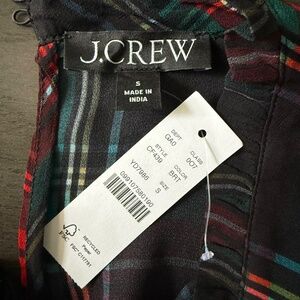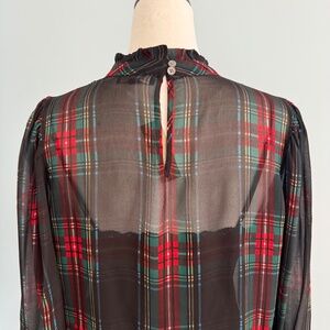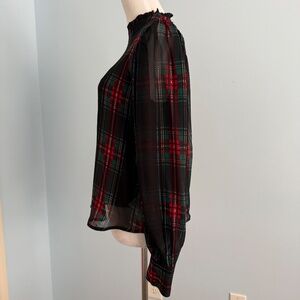 J.Crew Women’s Ruffleneck top in Stewart tartan chiffon size S. Color Black Red Tartan.