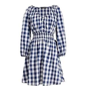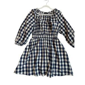 J.Crew Womens Size S Navy Gingham Plaid Smocked Waist Dress Trad Wife Retro