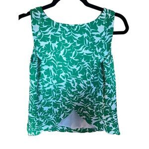 J.Crew Women's Sleeveless Green & White Scalloped Hem Leaf Print Top XXS