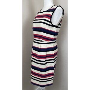 J.Crew Women’s Sleeveless Striped Peg Dress Ivory Pink Blue Career Teacher-8