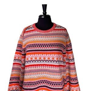 J.Crew Women’s Sweater 2X Fair Isle Lambswool Stretch Cropped Knit Pullover NWT